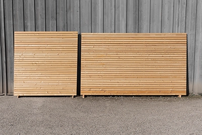 Wählen Sie aus langlebigen Hölzern wie Lärche, kesseldruckimprägnierte Kiefer, Bangkirai oder Douglasie – perfekt für Ihren individuellen Sichtschutz.