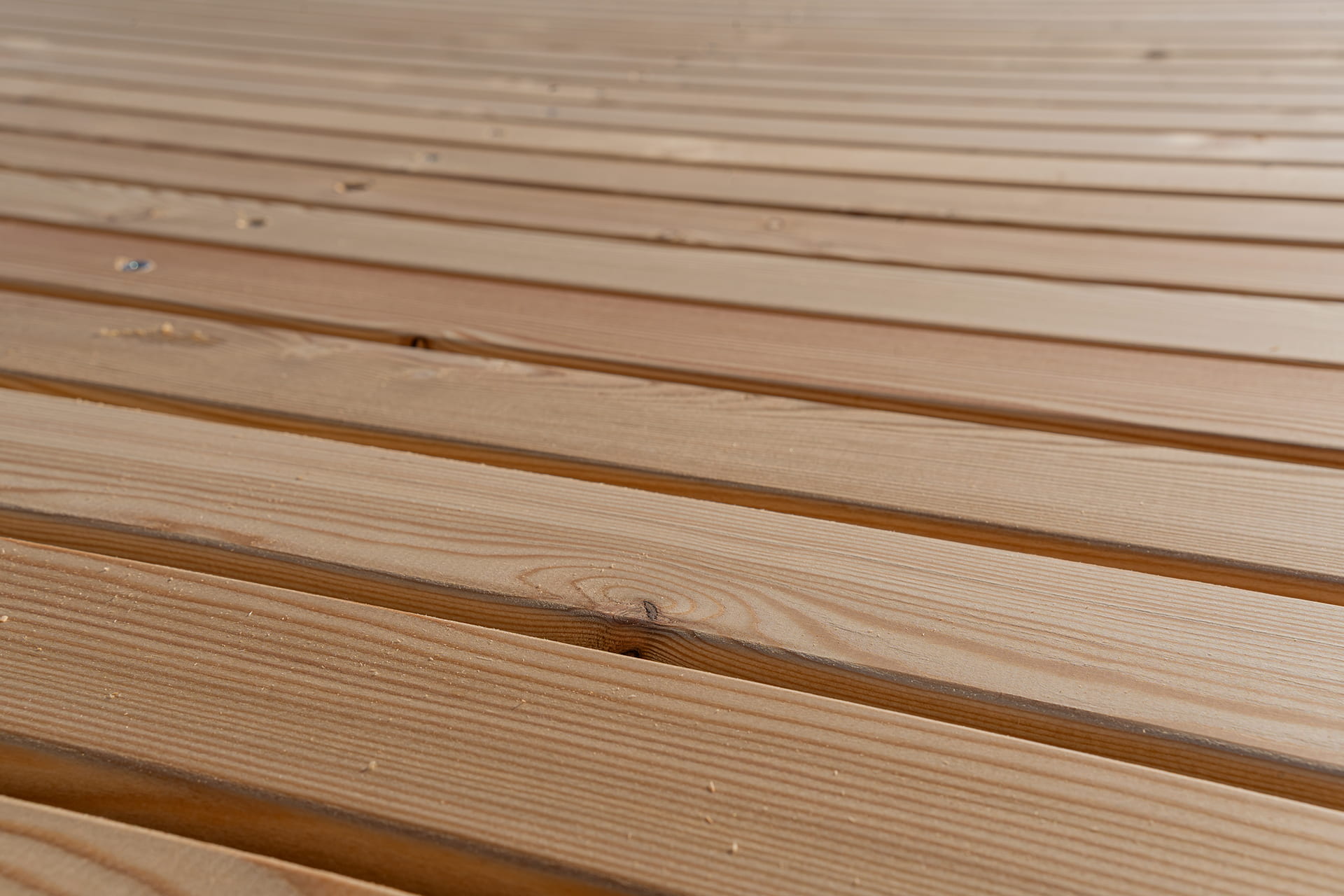 Um der Vergrauung entgegenzuwirken, können Sie farbpigmentierte Öle oder Lasuren verwenden. Diese schützen das Holz vor UV-Strahlen, verändern aber auch den Farbton – das Holz wirkt dann etwas anders als im frisch geschliffenen Zustand.
